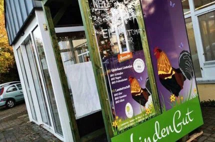 Unsere Bio-Automaten versorgen Sie rund um die Uhr mit feinsten Bio-Produkten aus unserer zertifizierten Demeter Landwirtschaft. Seit 2025 finden Sie unsere beiden Automaten direkt bei uns am LindenGut Hofladen. Sie werden stets mit frischen Bio-Eiern, Nudeln, Wurst sowie Bio-Suppen, Gulasch, Currywurst und Bolognese im Glas, Fruchtaufstrichen und vielem mehr bestückt.